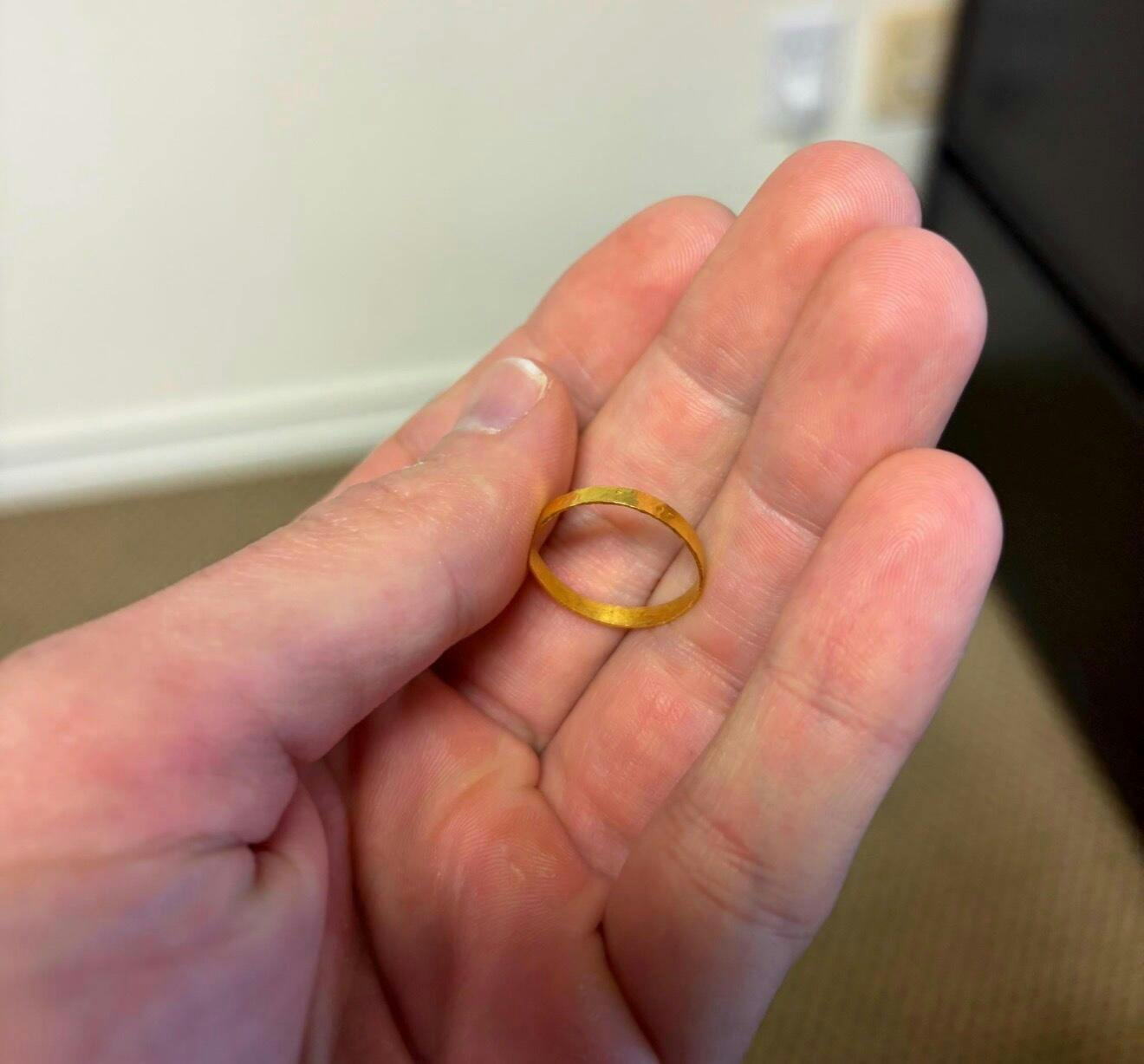 A real 24K pure gold ring, hand-forged from a single 1 gram gold bar — wearable wealth that blends minimalism with true intrinsic value.